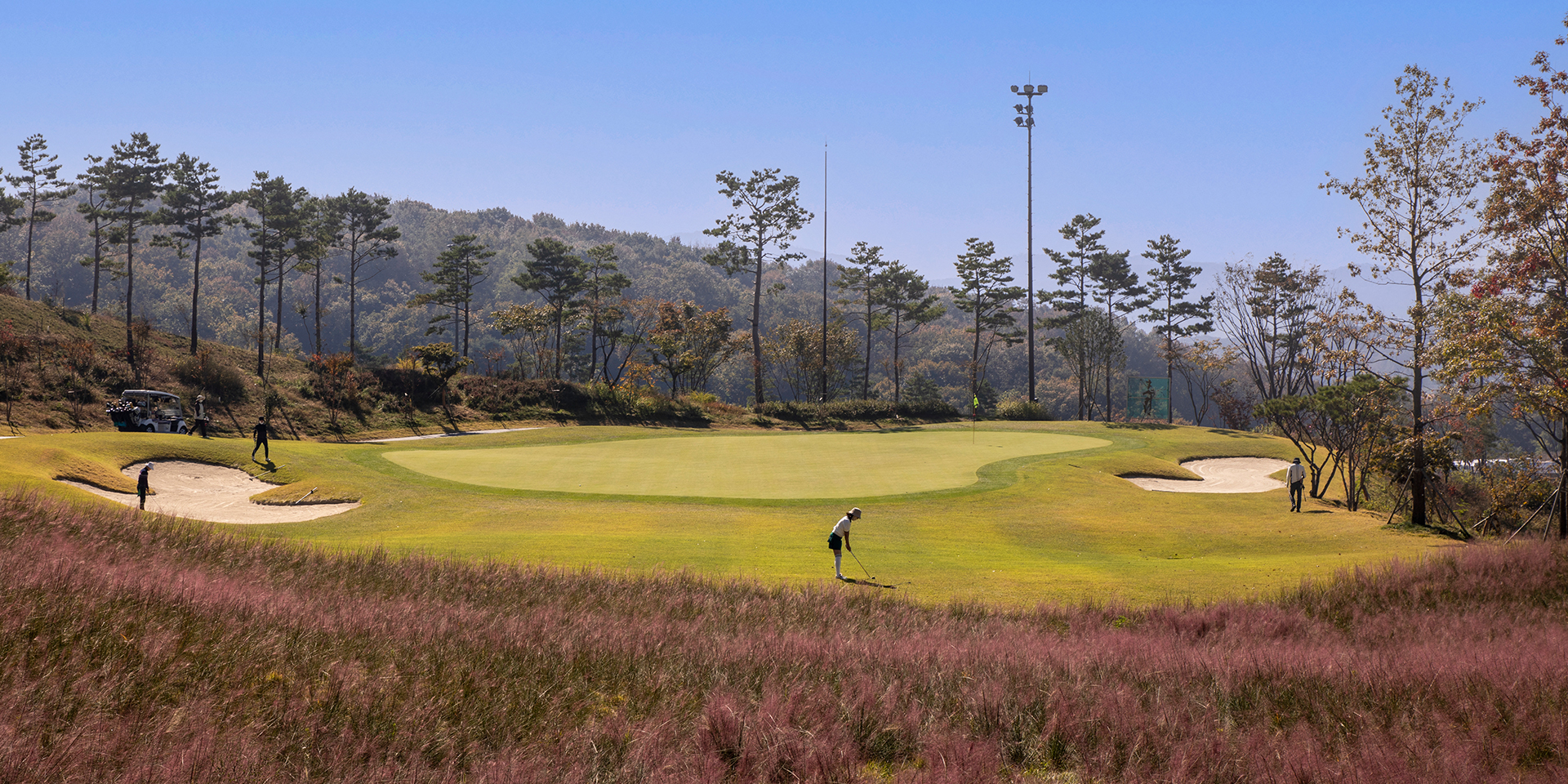 자연, 아름다움, 도전 승부욕을 자극하는 코스 레이아웃 자연친화를 바탕으로 일본 골프장 설계협회 부회장인 사또겐타로가 설계하였고. 자연과 아름다움를 조화시킨 골프코스의 설계는 마치 독수리가 내려 앉는듯한 형상을 골내미산 자락에 27홀을 입혀 골퍼들의 자연에 대한 도전과 성취감, 미려함에 심취될 수 있도록 한 근래 보기 드문 프리미엄 퍼블릭 골프 코스로 조성되었습니다.