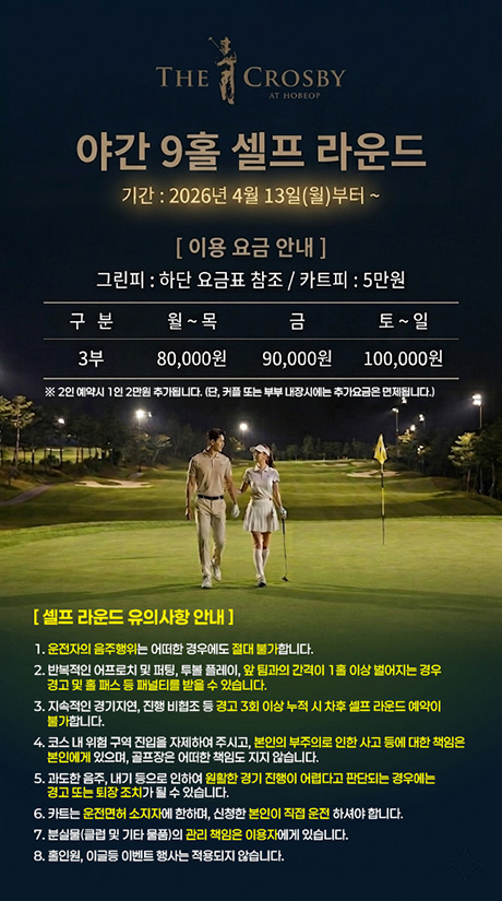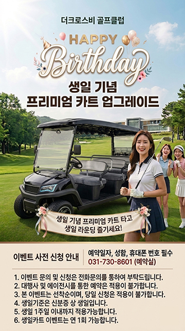 서울에서 40분, 동서남북 4개의 IC 지정학적 최고의 위치 동쪽으로 이천IC, 서쪽으로 덕평IC, 남쪽으로 남이천IC, 북쪽으로 서이천IC 가 위치해 있으며, 각 IC에서 더크로스비GC까지 10여분만에 도착이 가능한 접근성은 더크로스비GC만의 장점입니다.