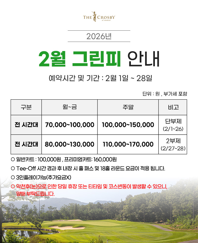 제목 : 26년 2월 그린피 안내입니다.