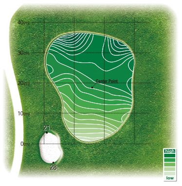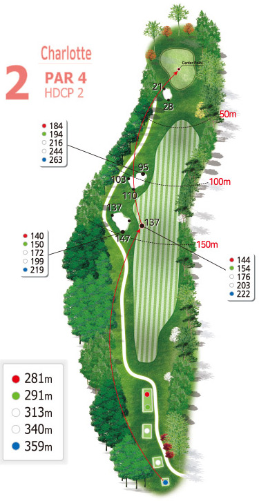 그린까지 계속 오르막으로 페어웨이 굴곡이 심하고 슬라이스가 많은 파4홀이다. 그린 뒤가 병풍처럼 법면으로 둘러 쌓여 안정감을 느끼나 그린 앞 벙커가 입을 벌리고 있어 심리적으로 길게 보는 경향이 있다.